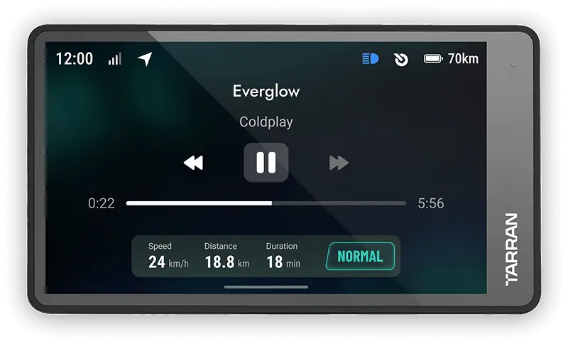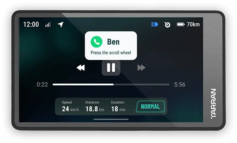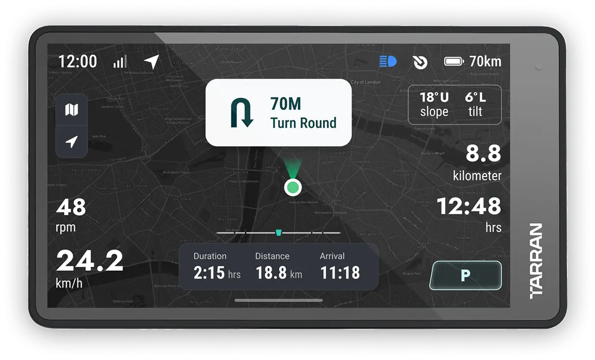 TarranOS integrates cameras, radar, lighting and more, all served on a 5.2-inch Retina Central Display to ensure seamless and safe riding.